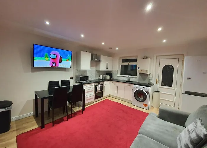 Obiekt jest wyposażony w pełnowymiarową kuchnię, kuchenkę mikrofalową, lodówkę i przybory kuchenne. Wyśmienitych dań i specjałów kuchni brytyjskiej goście mogą skosztować w Blue Bay, prawie 600 m od obiektu. Odległość od lotniska Glasgow wynosi 20 km, a od dworca autobusowego London Road / Brook Street - 200 metrów. Obiekt cieszy się popularnością, ponieważ oferuje taras, patio i miejsce na piknik.